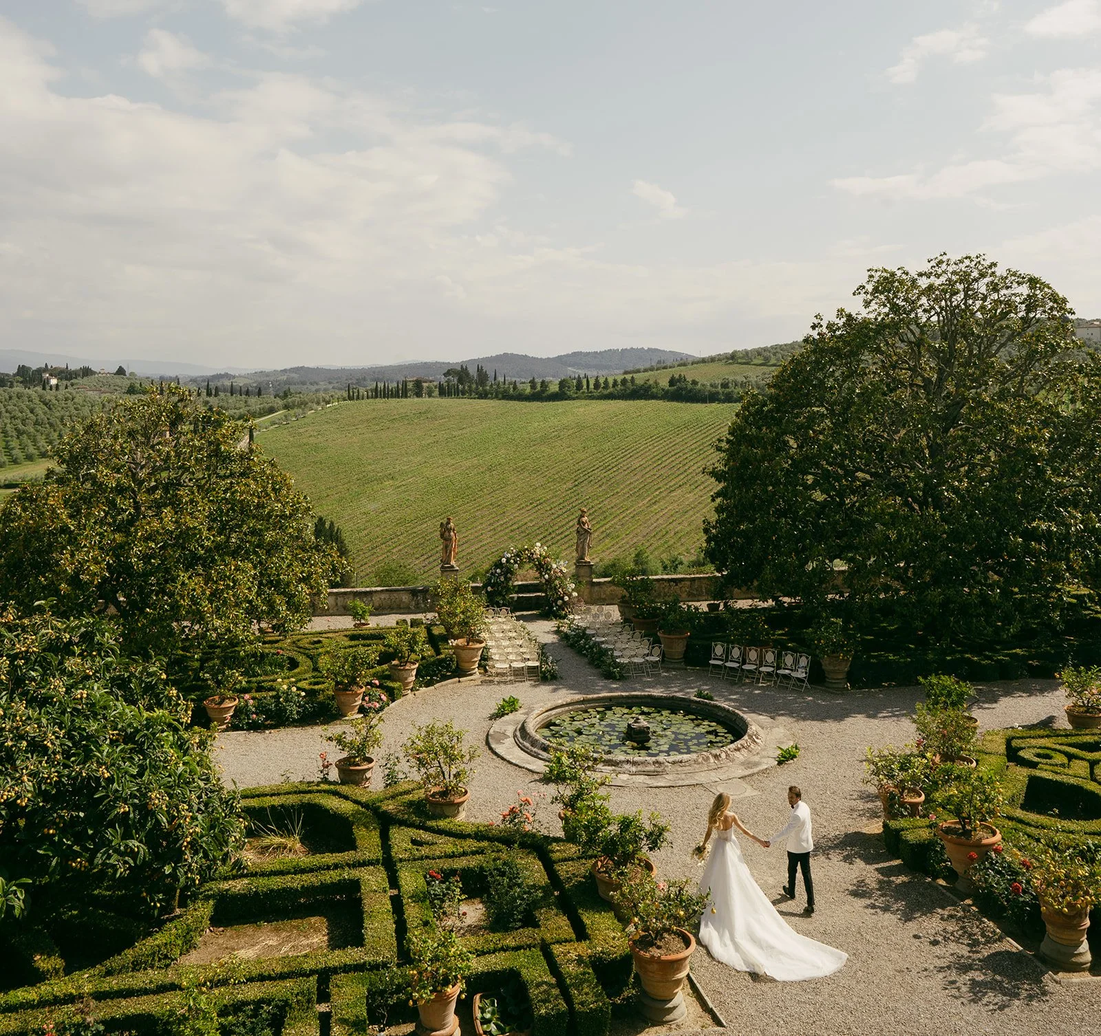 Yes, Villa Corsini allows couples to bring their own luxury vendors, including florists, chefs, and entertainment, as long as they meet the villa’s high standards. We can also recommend top-tier vendors who are familiar with the venue’s needs.