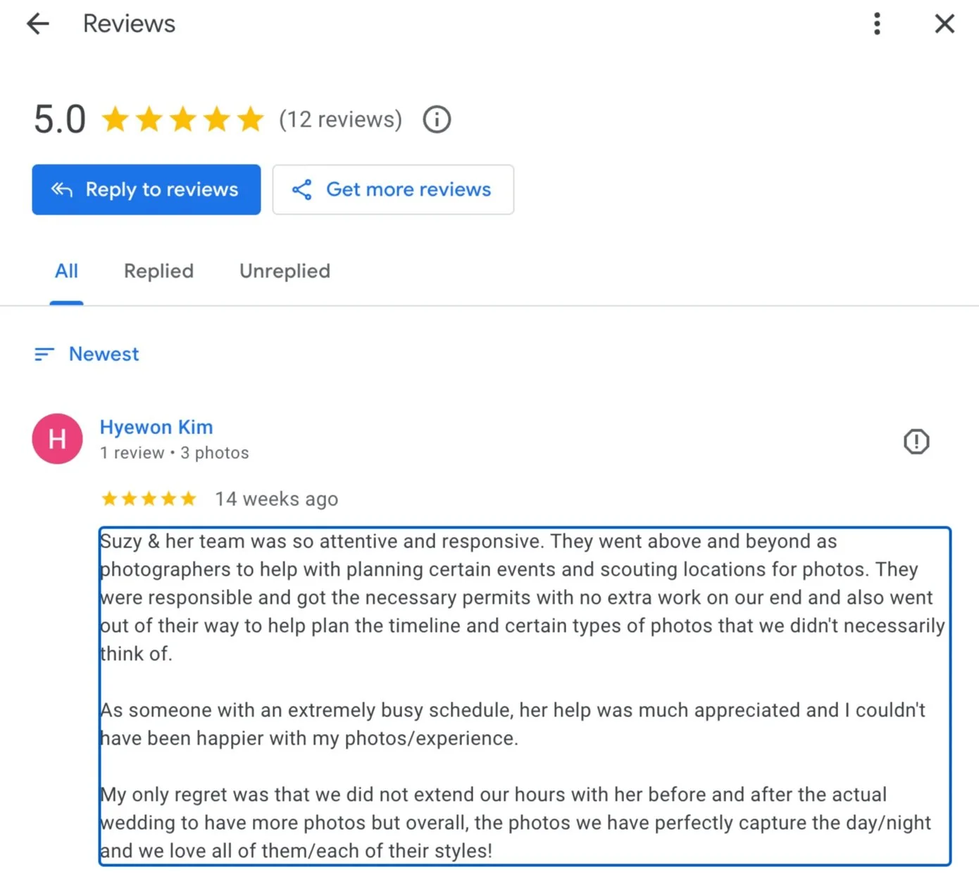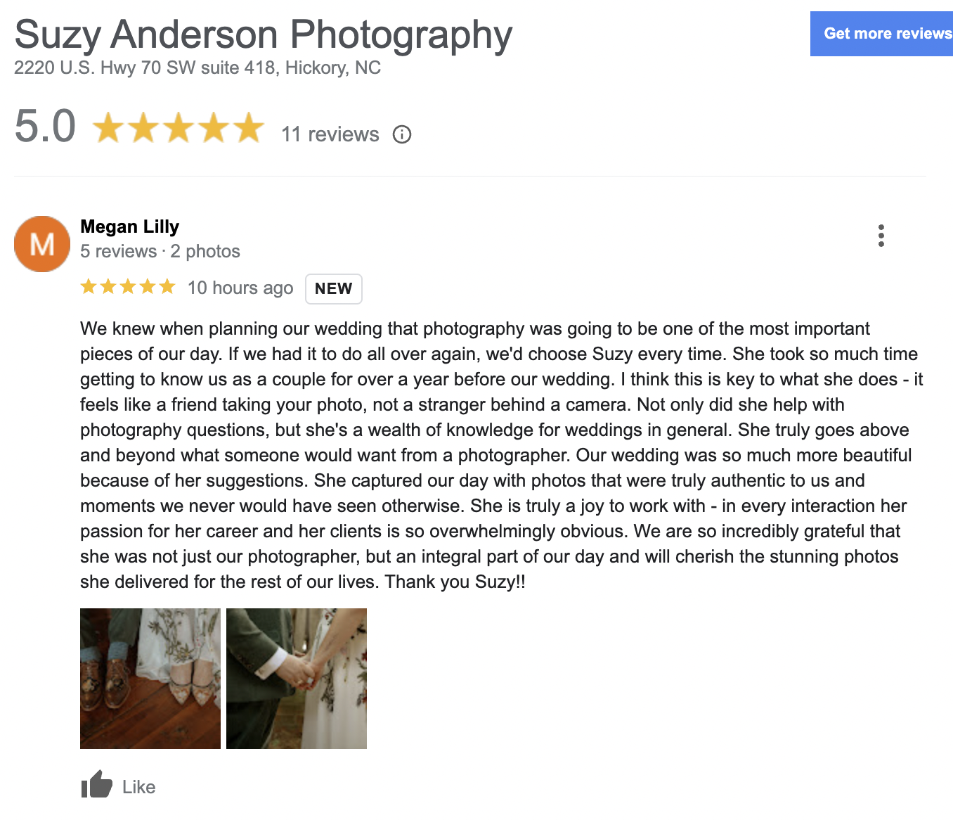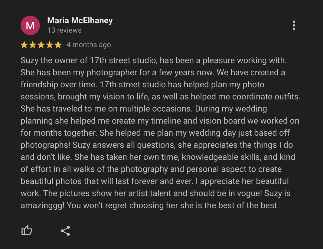 “ We got every photo I would’ve ever wanted. We couldn’t have asked for a better photographer to capture our day”